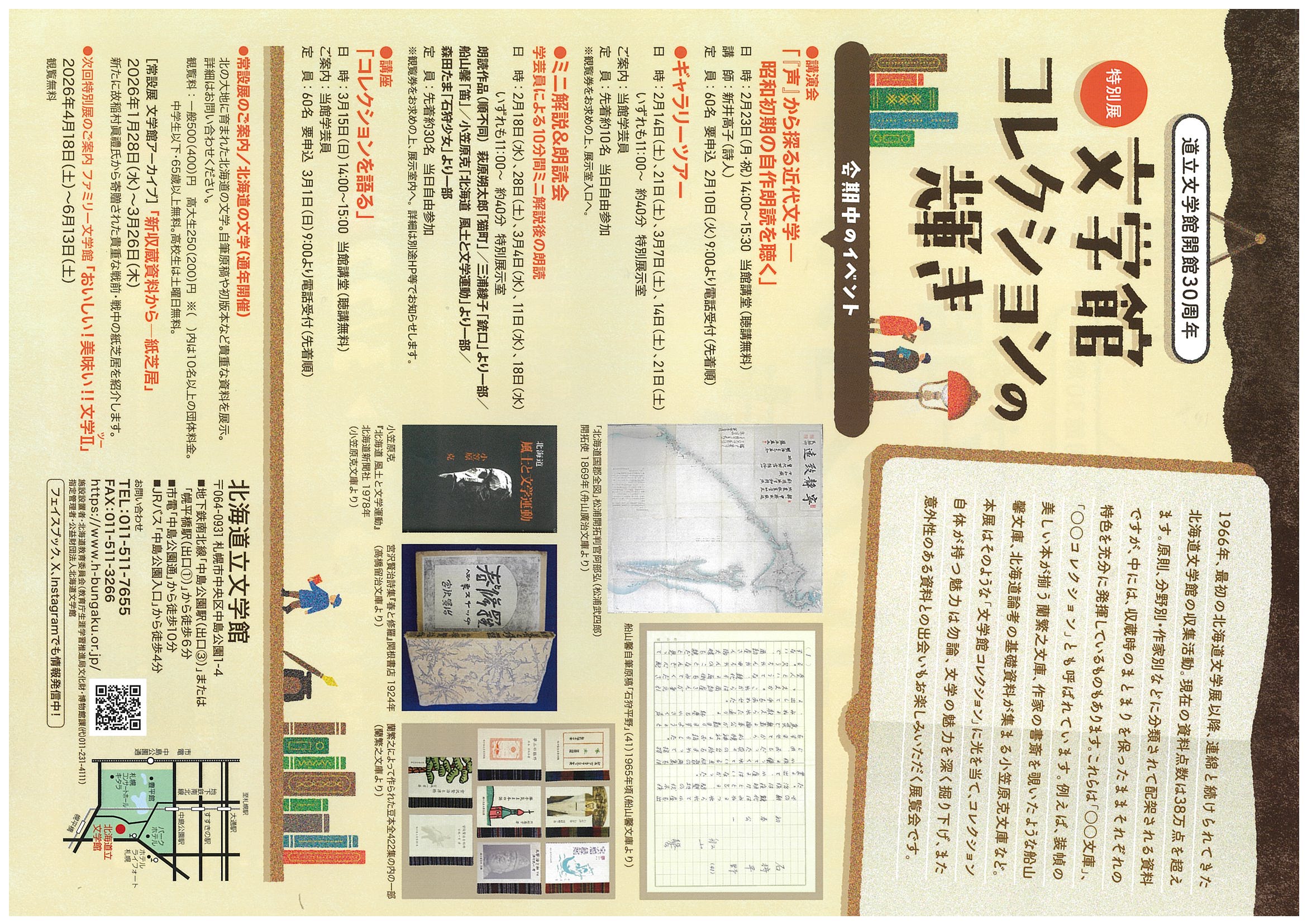 1966年の最初の北海道文学展以来、連綿と続けられてきた収集活動。現在の資料点数は38万点を超えます。 原則、分野別・作家別などに分類され配架される資料ですが、中には収蔵時のまとまりを保ちそれぞれの特色を存分に発揮しているものもあります。 装幀の美しい本が揃う蘭繋之文庫、作家の書斎を覗いたような船山馨文庫、北海道文学論考の基礎資料が集まる小笠原克文庫……。 本展では「〇〇文庫」「〇〇コレクション」などと称されるそれらの資料群に光を当て、文学の魅力を掘り下げていきます。意外性のある資料との出会いもお楽しみに。